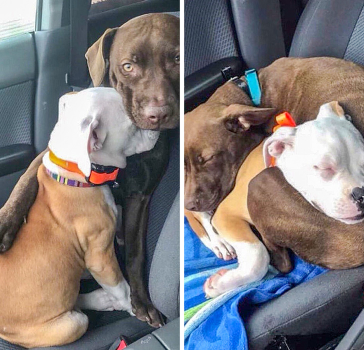 4. Це Дейзі і Місяць. Дейзі боїться поїздок на машині, і Місяць робить все можливе, щоб їй було спокійніше