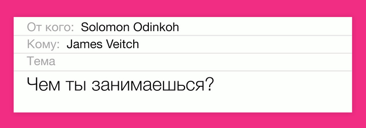 Це був далеко не останній відповідь Джеймса Вейча на лист зі спамом. Для таких листувань, які тривають вже 3 роки, він навіть завів другу пошту
