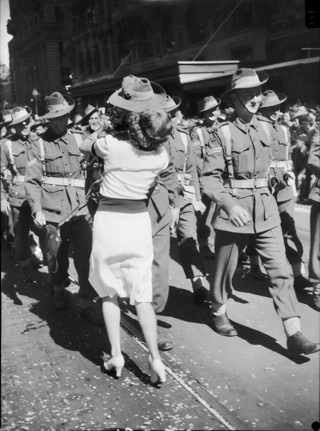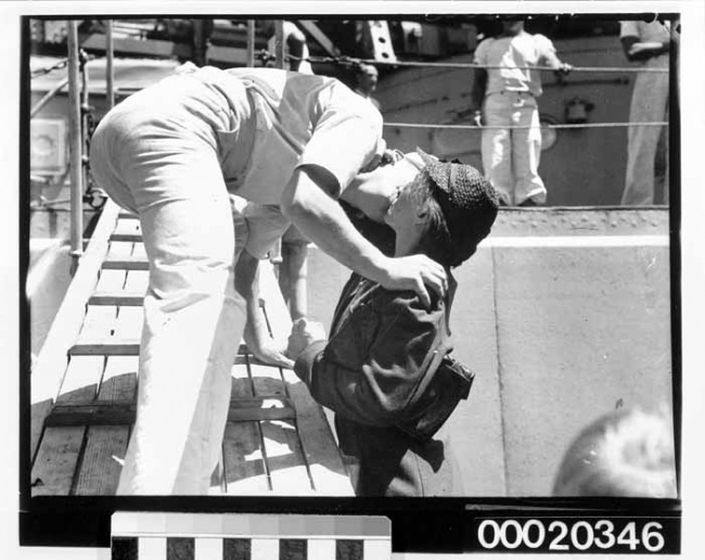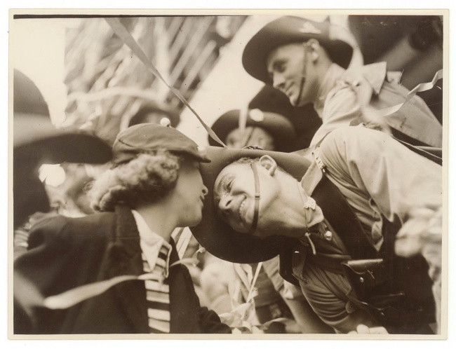 14. Матрос нахилився, щоб поцілувати дівчину після повернення крейсера «Сідней», лютий 1941 року