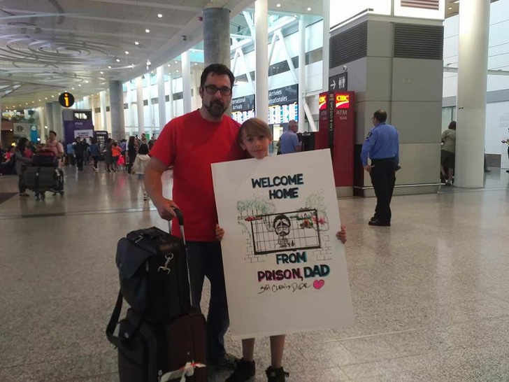 16. «В День батька я прилетів додому з відрядження. Син зустрічав мене з плакатом»