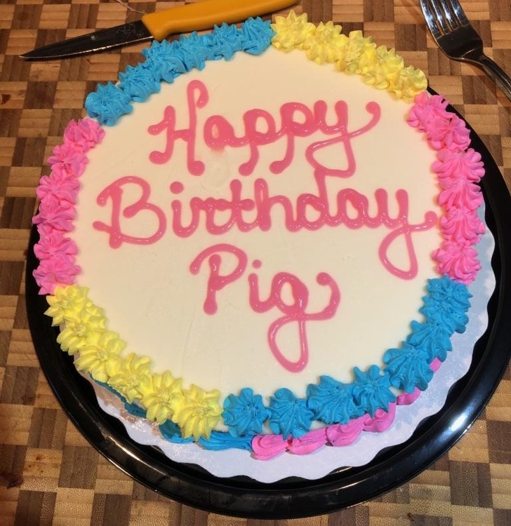14. «У мами сьогодні день народження. Тато приніс торт, але не перевірив напис на ньому. Маму звуть Пег»