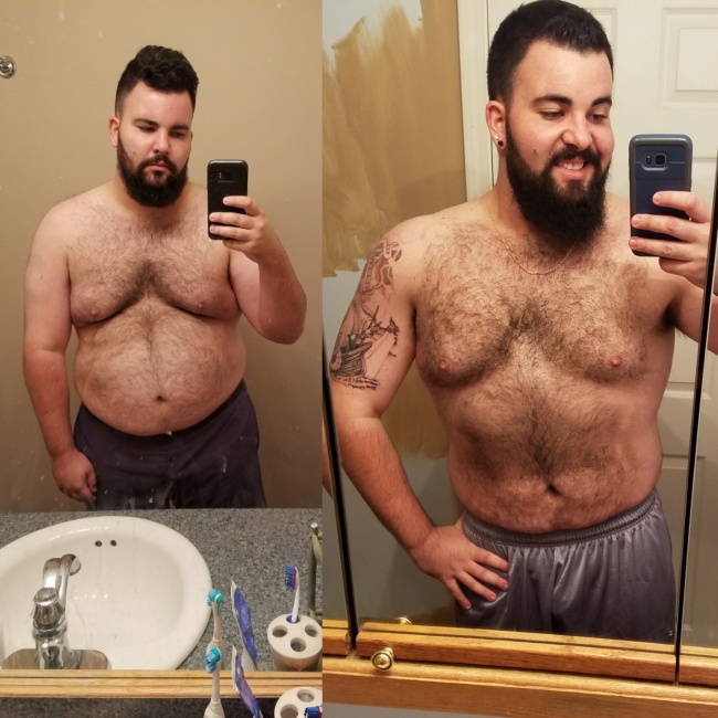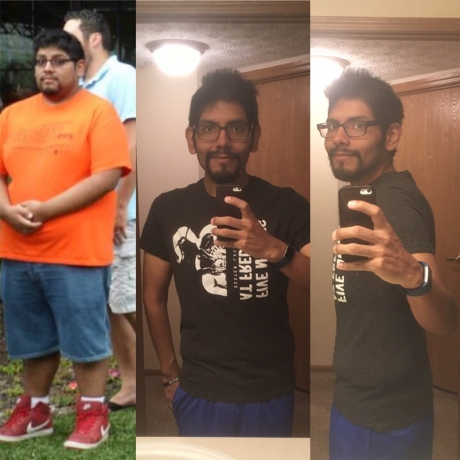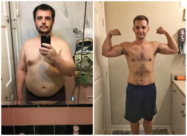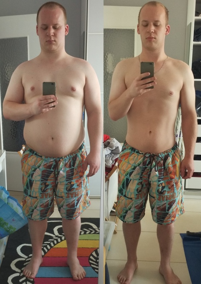 Молодий чоловік стверджує, що йому вдалося схуднути завдяки кетогеновой дієті — режиму харчування з низьким вмістом вуглеводів і високим вмістом жирів (її більш м'який аналог — дієта Аткінса). Ну і без тренажерного залу тут явно не обійшлося.