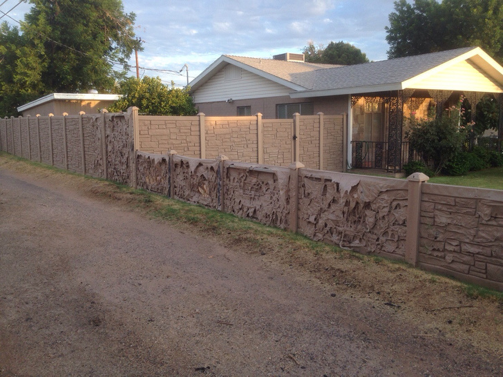 12. «Взимку сусіди поставили цей пластиковий паркан з імітацією каменю. Зараз він повільно плавиться на сонці»