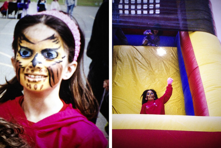«Колега показала своє дитяче фото, де вона спускається з гірки з розмальованим обличчям і пов'язкою для волосся, намотаної навколо руки. Схожа на Майкла Джексона, правда?»