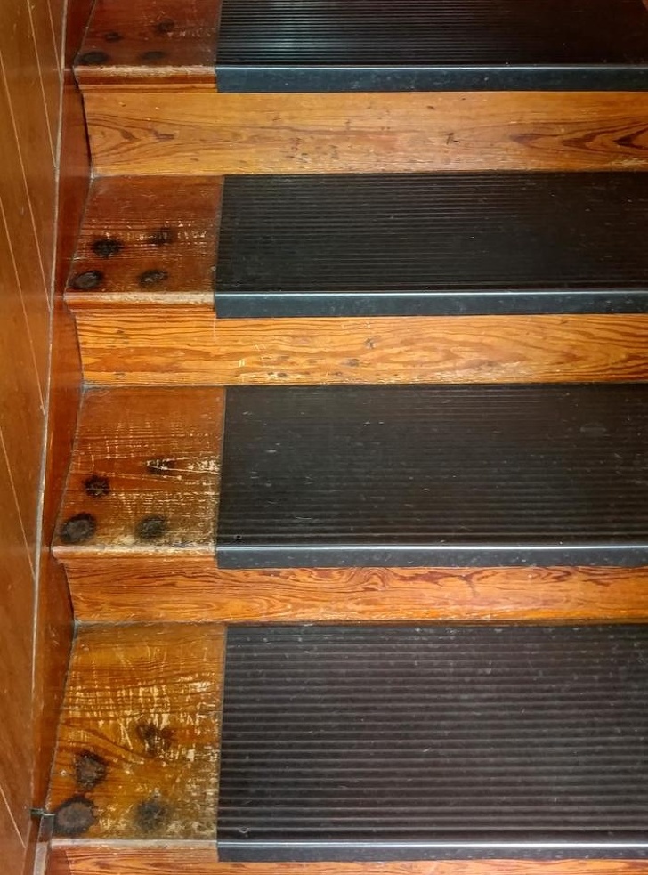 «Сліди на сходах, зроблені моєї таксою за багато років. Вона ходить виключно по одній траєкторії»