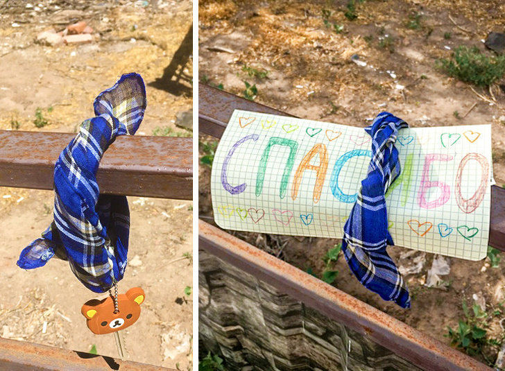 «Якщо вам холодно, ці речі — ваші. Якщо ви хочете допомогти, залиште теплі речі тут».