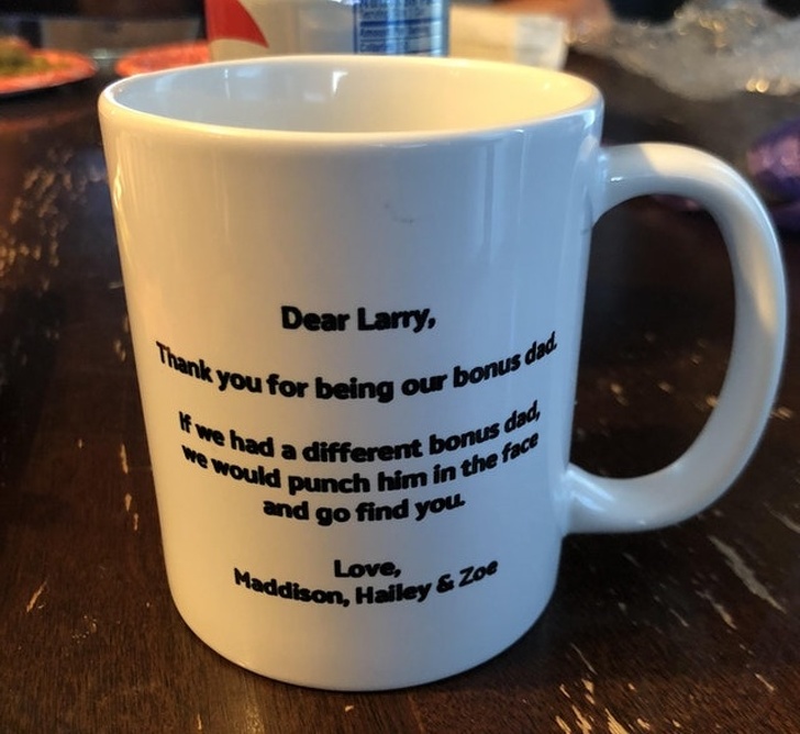 Спасибі за те, що ти наш вітчим. Якщо б у нас був інший вітчим, ми вдарили його по обличчю і пішли шукати тебе.