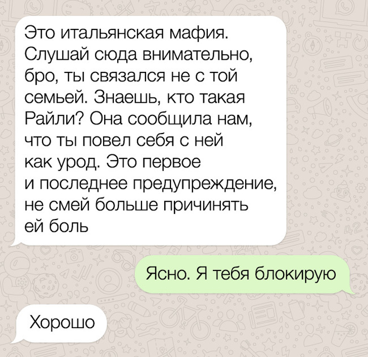 7. «Я заблокувала колишнього скрізь, де тільки можна: соціальні мережі, телефонні номери, пошта і т. д. А він примудрився написати мені „Як справи?“, перерахувавши 1 долар через додаток для перекладу платежів. Потім він прислав мені ще 1 долар, але вже зі смайлом»