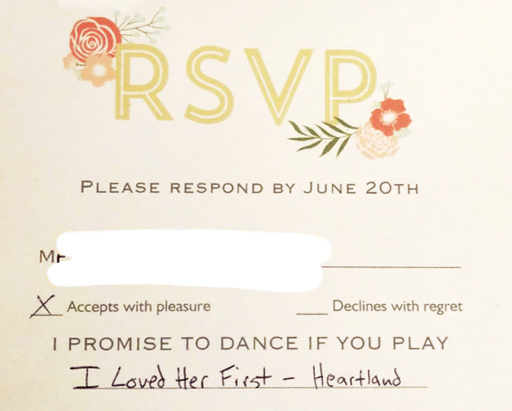 2. «Запросила колишнього на весілля. По-перше, він прийде. По-друге, подивіться, яку пісню він попросив включити у весільний плейлист»