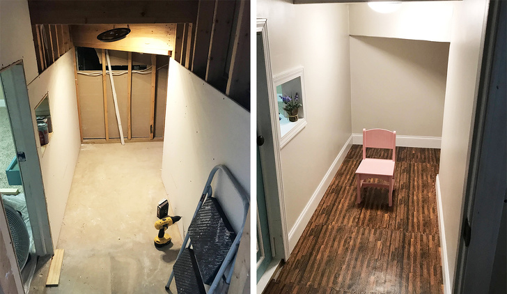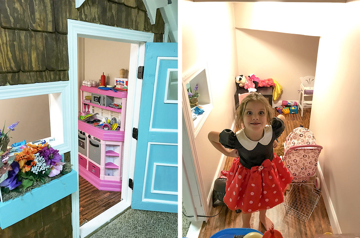 Можете повірити, що нещодавно на місці цього шедевра був підвал під сходами, темний та вогкий, забитий всяким мотлохом? Але з допомогою вмілих рук і фантазії він перетворився не просто у ігрову кімнату, а в справжній будинок для розваг, як в кращих мультфільмах і казках. Гаррі Поттер, побачивши це, змахнув би сльозу.