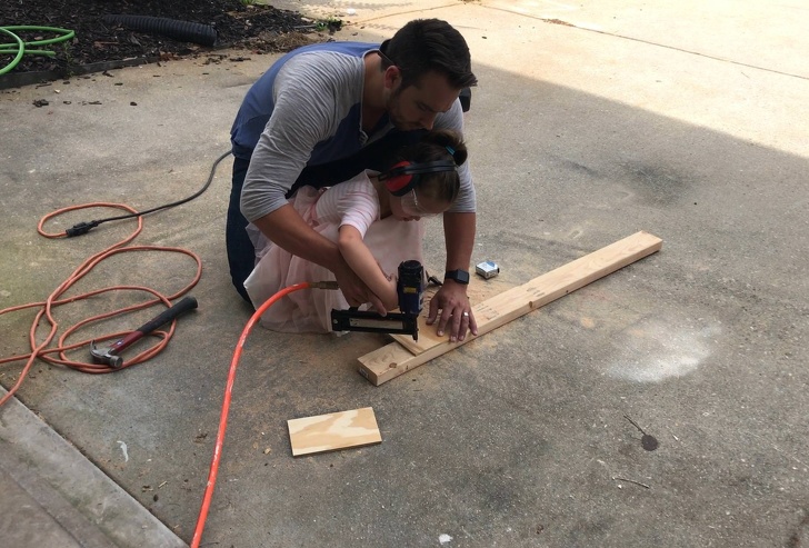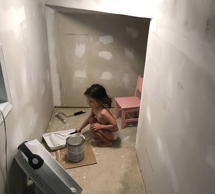 Старша дочка не залишилася осторонь і допомагала батькові фарбувати стіни, навіть непогано справлялася з лобзиком.