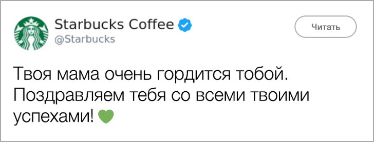Навіть у твіттері кав'ярні Starbucks, куди мама з донькою ходили, щоб відзначити свій маленький свято, що дівчину намагалися підтримати.