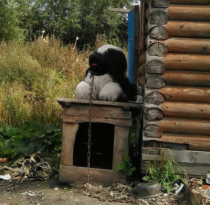 «На міському звалищі живуть бомжі, які виявилися дуже винахідливими. Здалеку плюшева собака здається дуже навіть справжньої»