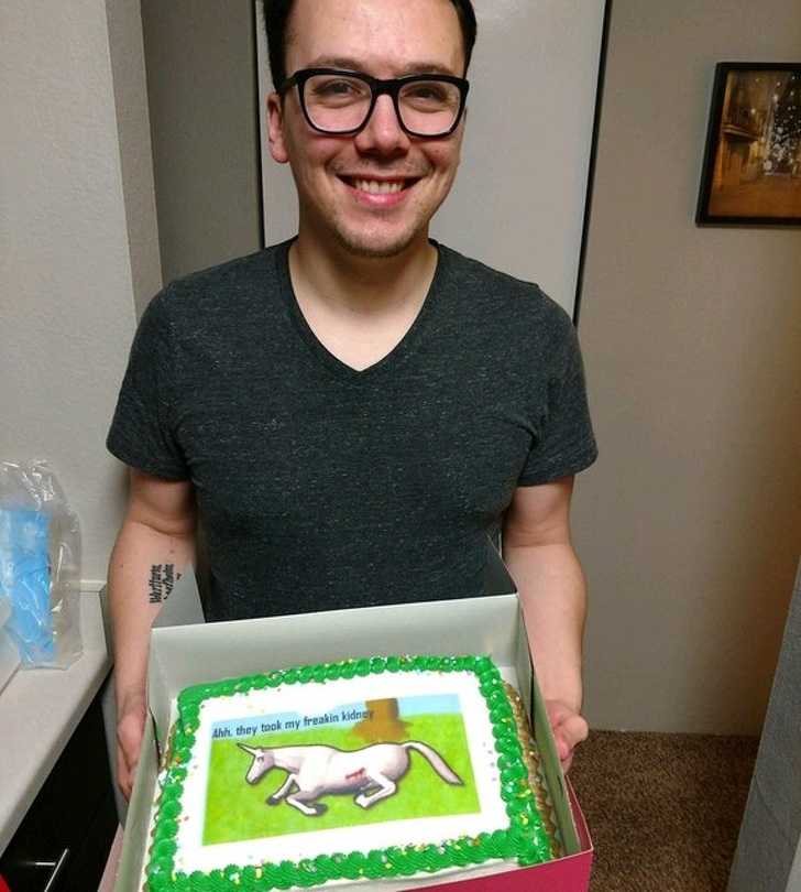 8. «Кілька днів тому я пожертвував нирку, і приятель вирішив зробити мені торт з цієї нагоди»
