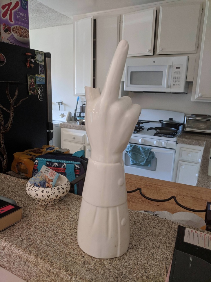 «Забули погодувати котів вчора ввечері, і вони скинули зі столу нашу статуетку — знак миру. Здається, кінець світу»