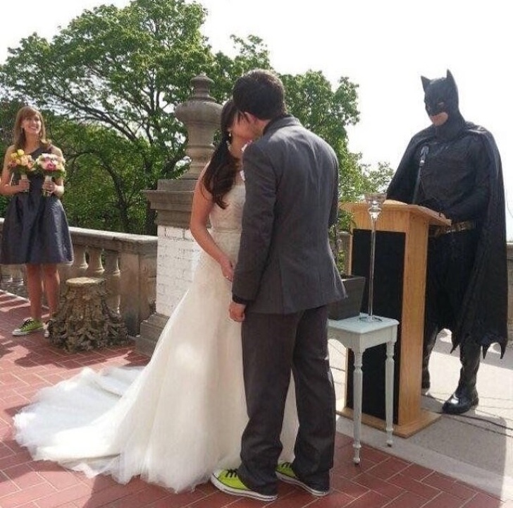 Весільна фотосесія — це найчастіше постановочні кадри на тлі красивих декорацій, де наречена неодмінно в білому платті, а гості посміхаються і милуються. Але зустрічаються унікальні знімки, які вибиваються з нашого звичного уявлення про весілля.