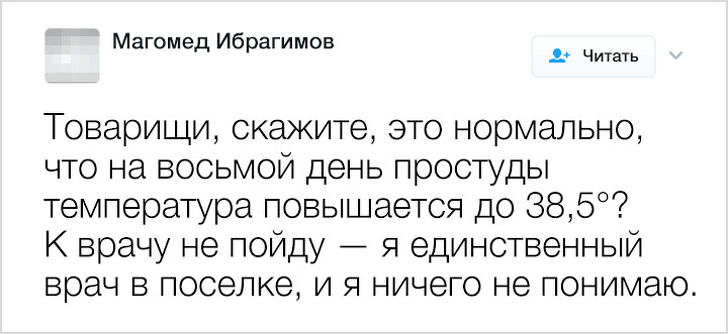 16. "На випадок, якщо в 3 ночі у вас зачешеться п'ятка й кольне в безіменному пальці лівої руки, ми приїдемо і зробимо цей укол"