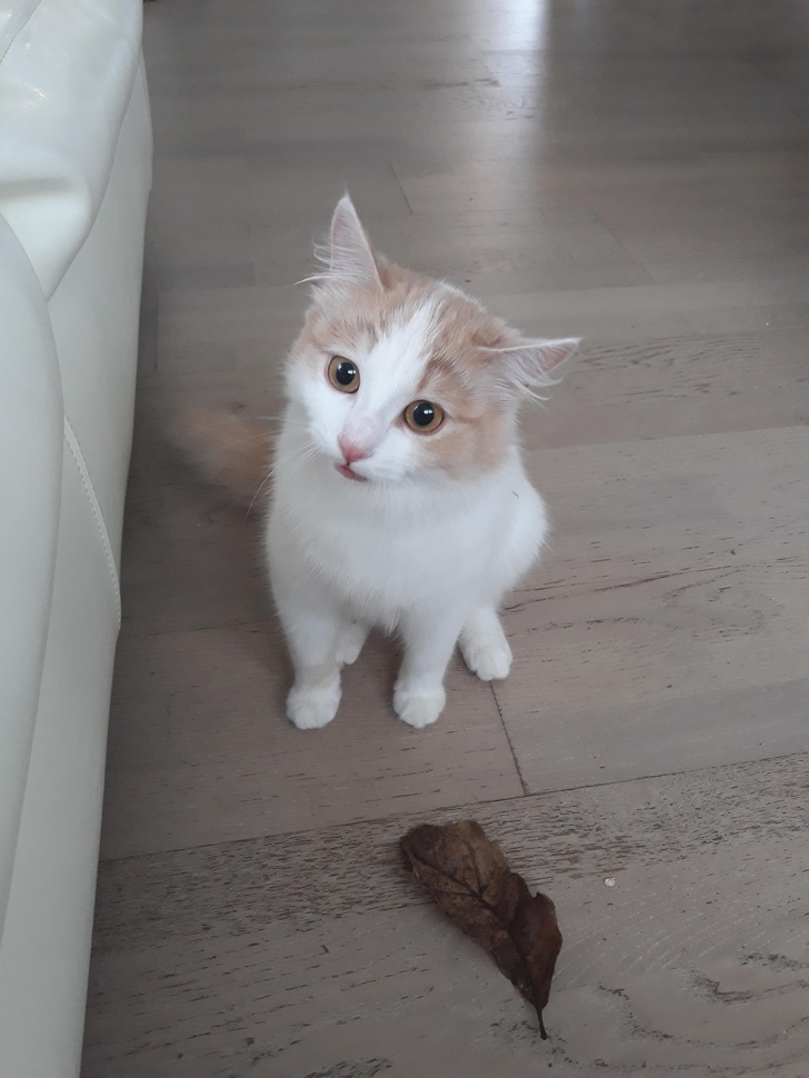 «Кошеня приносить мені листя, які знаходить в саду. Сьогодні у нього великий улов»