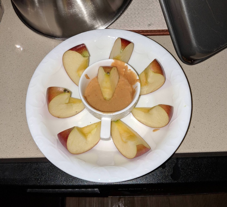 «Всякий раз, коли моя дружина встає о 3 годині ночі, щоб погодувати грудного сина, я готую їй один і той же „делікатес“ — арахісову пасту з яблуками»
