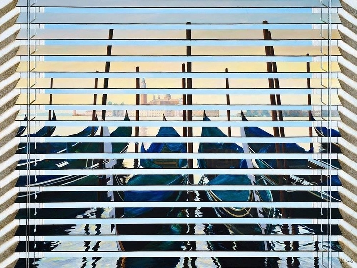 Шикарний вид за вікном — лише картинка, наклеєна на смуги жалюзі