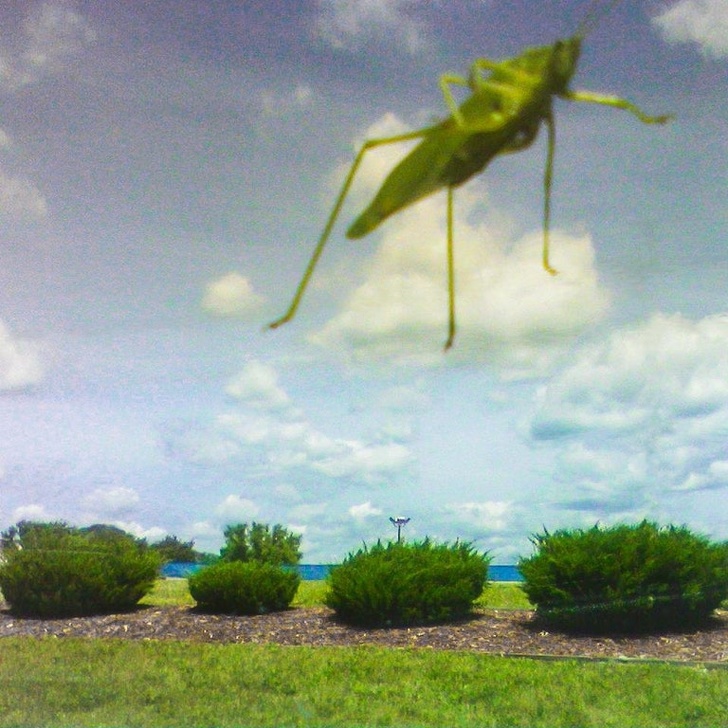 Коник приземлився на лобове скло, а схоже на те, що гігантські комахи вирішили захопити нашу планету
