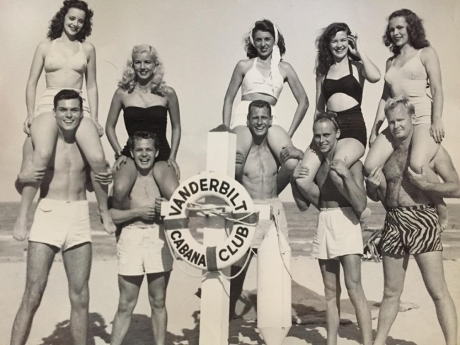 «Мій дідусь (зліва) та його друзі з якимись красунями, 1940-е»