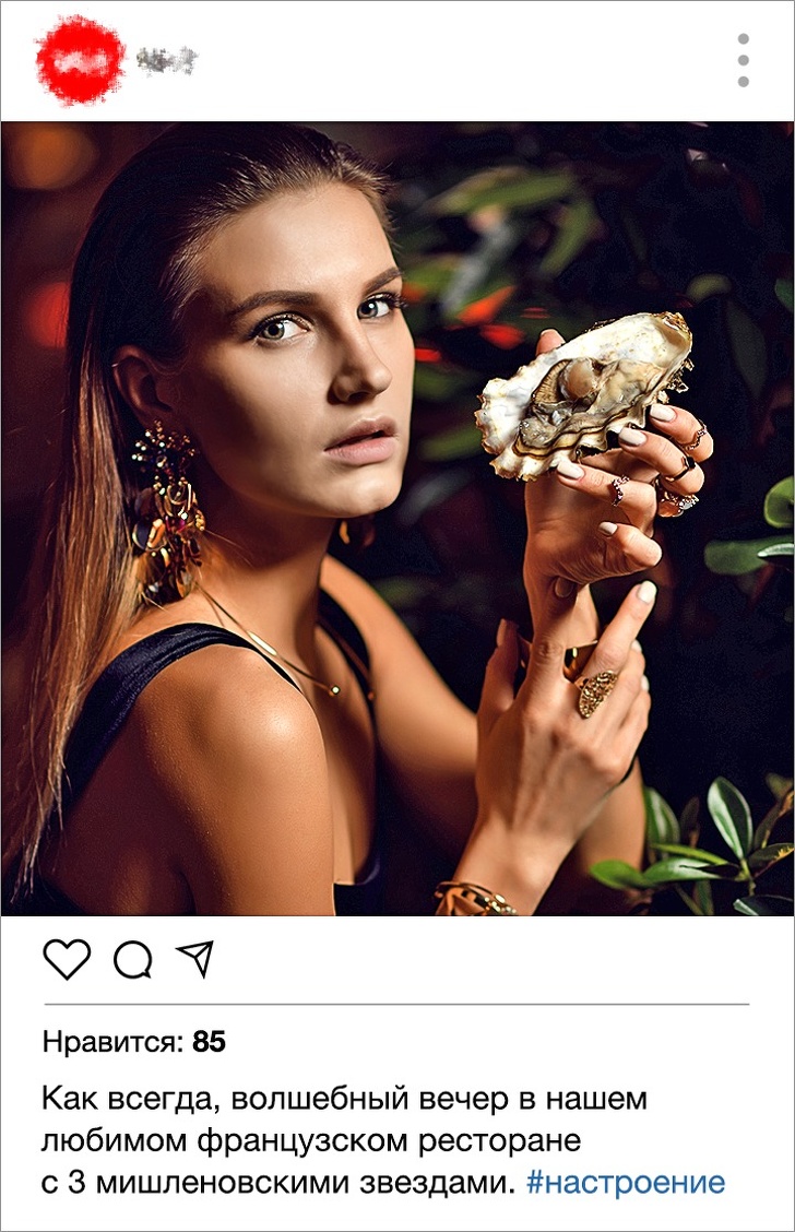 4. Щоб від фото повіяло розкішшю і пафосом, запросіть взяти участь у зйомці устриць або омарів. А для шику-блиску можна надіти побільше біжутерії на себе...