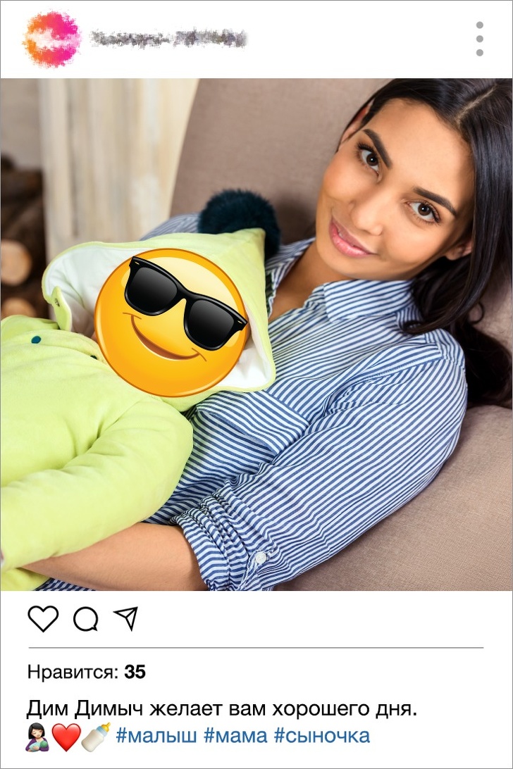 3. Стікер на обличчя — відмінне рішення дилеми: викласти фото дитини і отримати лайки або не викласти, але зате уникнути пристріту