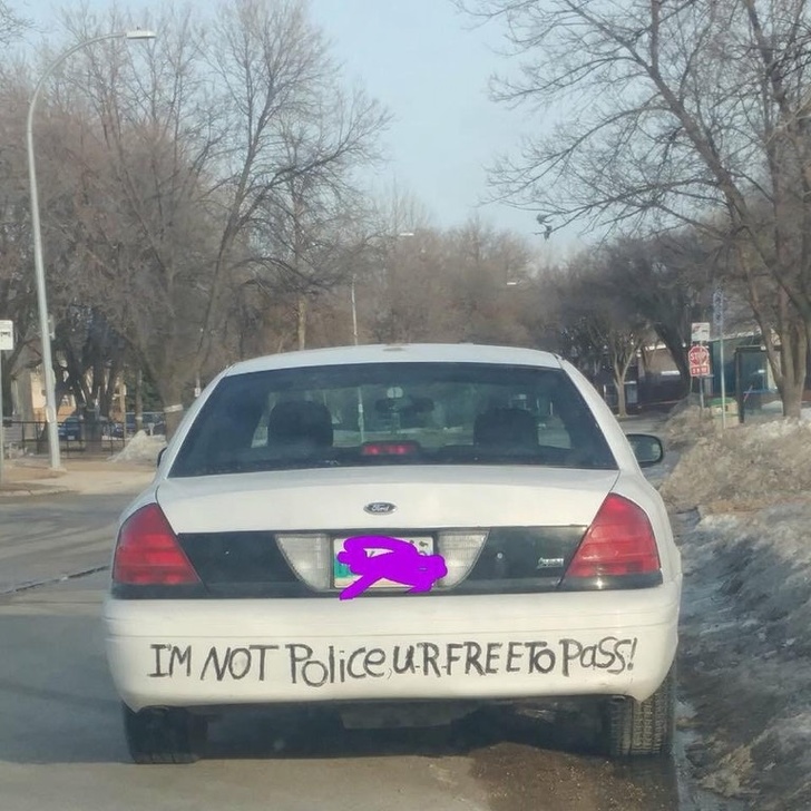 Цей хлопець їздить на поліцейській машині, і ось що він був змушений написати на своєму бампері