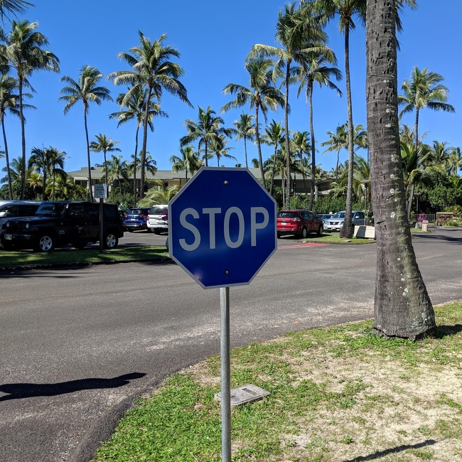 16. Знак «стоп» синього кольору, помічений на Гаваях