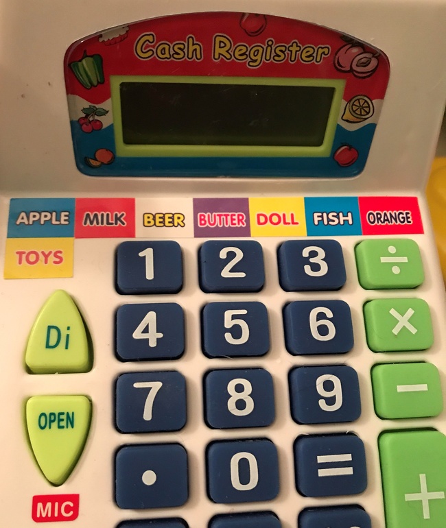 15. На цій іграшковою касі поряд з яблуками, молоком і маслом є напис «пиво»