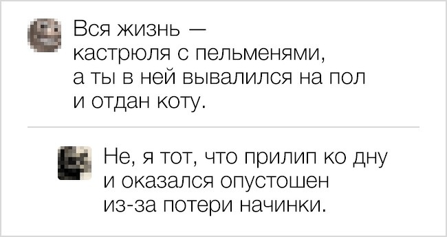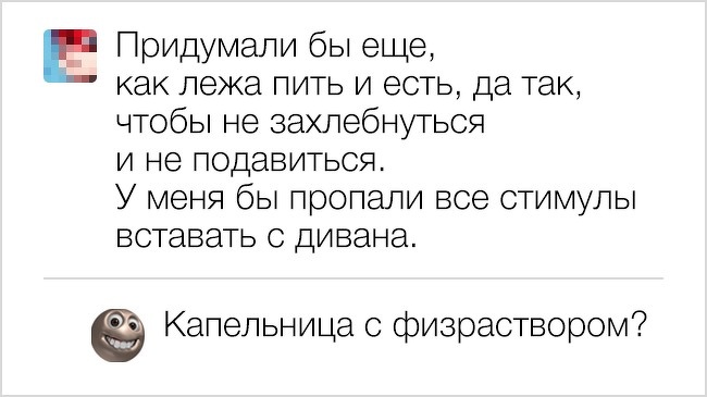 Залишити дотепний коментар — це ціле мистецтво, яким володіють лише люди з іскрометним почуттям гумору. Завдяки їх віртуальним комедіантам ми і складаємо такі збірки, які можуть привнести навіть пересічний день крапельку гарного настрою.