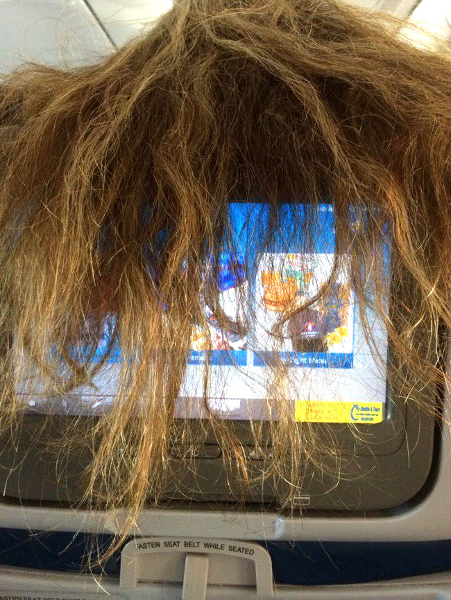 Здається, деякі забувають, що у них на голові довге волосся, які можуть доставляти незручності іншим