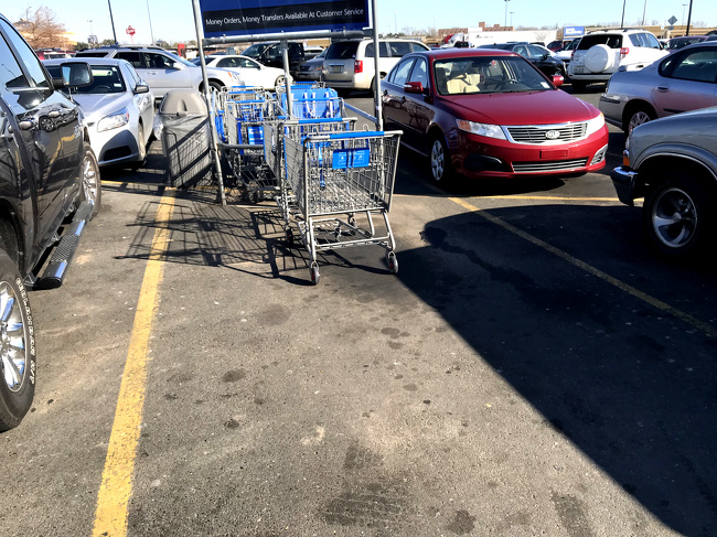 Така картина на стоянці гіпермаркету — ознака ледаря, яким складно відвезти візок назад