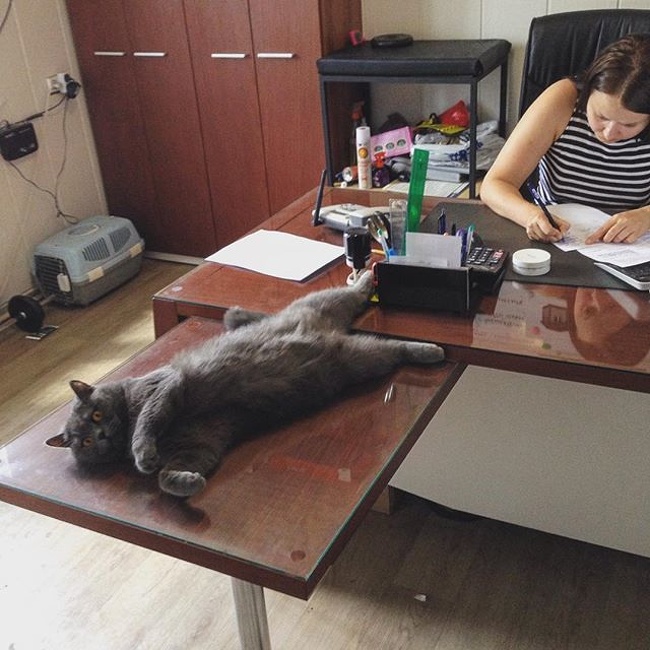 З котейкой навіть сама нудна робота в офісі стає приємніше і веселіше