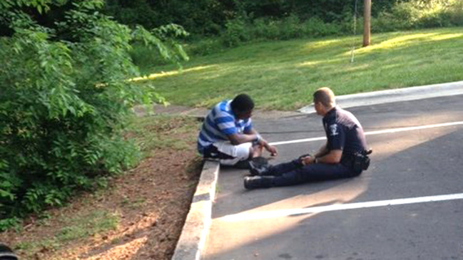 Офіцер поліції говорить з дитиною-аутистом, який хотів покінчити з собою