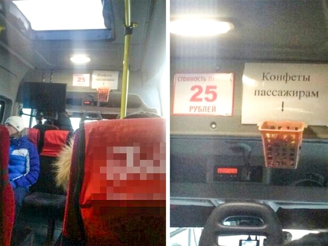 Водій маршрутки пригощає пасажирів цукерками