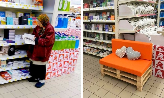 У книжковому магазині поставили диванчик для бабусі, яка приходить туди читати