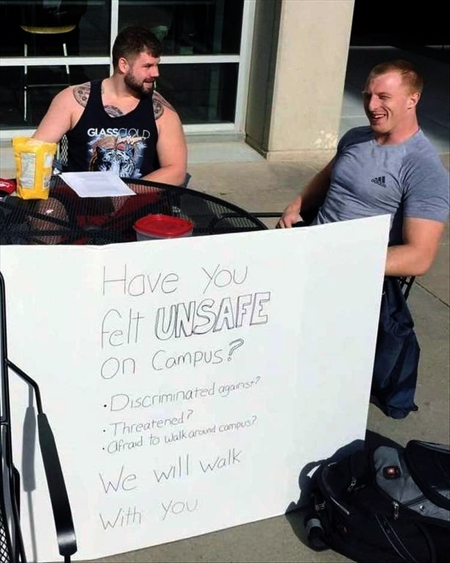 «Відчуваєш себе небезпечно на території університету? Піддавався дискримінації? Тобі погрожують? Боїшся гуляти навколо студмістечка? Ми погуляємо з тобою».