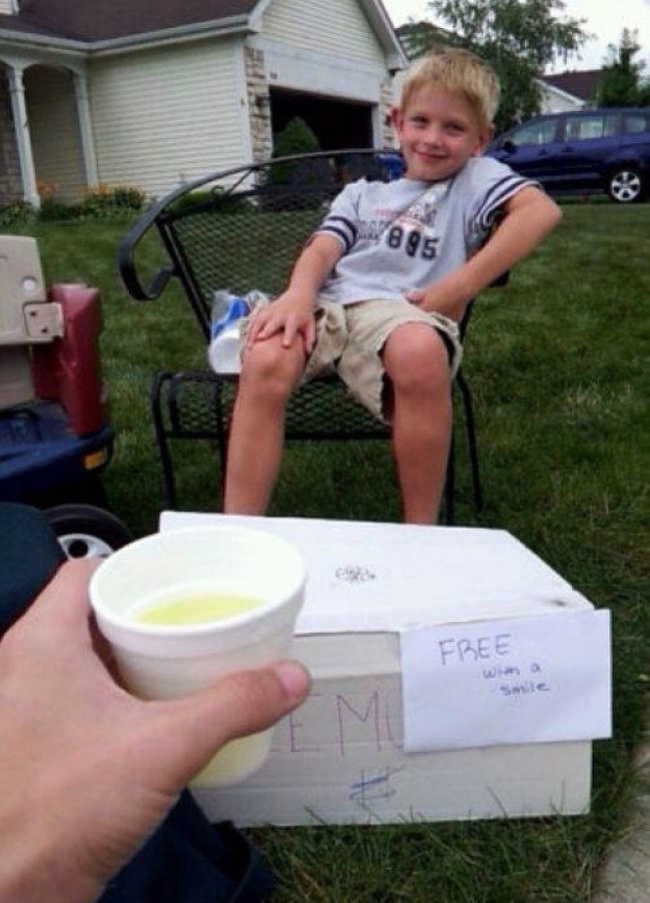 Хлопчик роздає лимонад безкоштовно в спекотний день