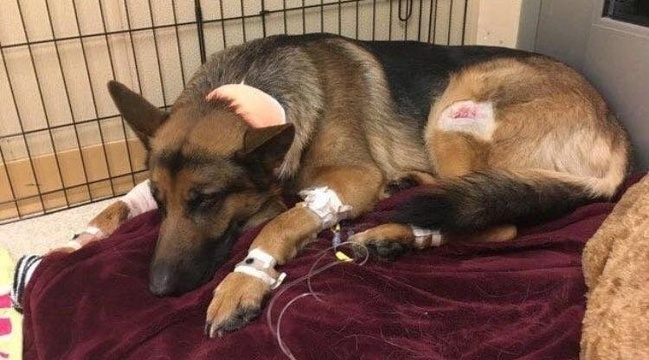 Пес у лікарні, після того, як врятував 16-річного господаря від грабіжників