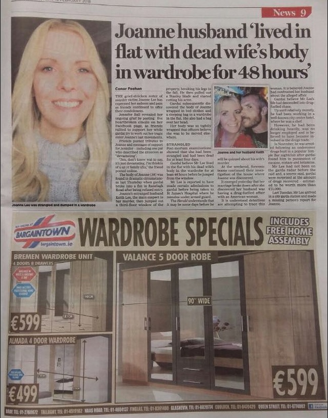 «Новину: чоловік Джоани прожив 48 годин у квартирі, в шафі якій лежало тіло його дружини».