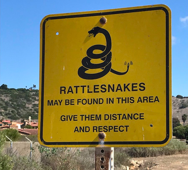 «Гримучі змії живуть в цьому районі. Тримайтеся на відстані і проявіть повагу».