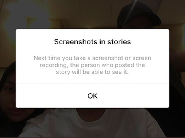 «Коли наступного разу ви зробите скріншот або відеозапис екрану, людина, запостивший Stories, зможе це побачити».