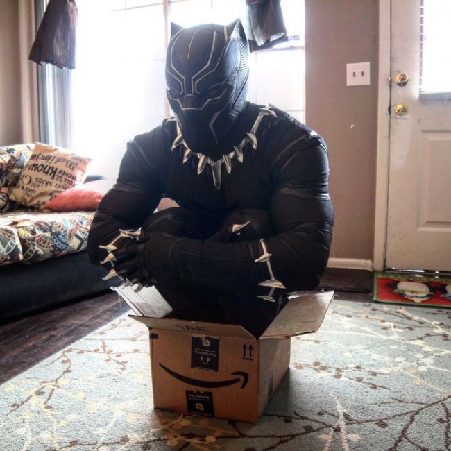 Котячі інстинкти не можуть дозволити пройти повз картонної коробки і не залізти в неї, навіть якщо ти Чорна пантера