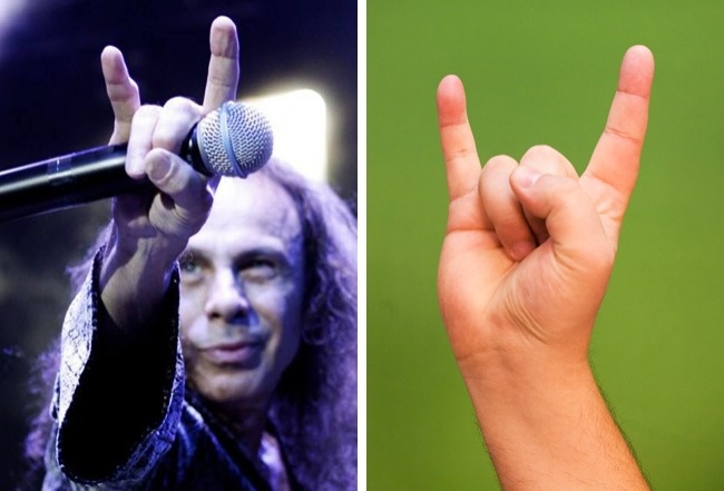 Рокерських «коза» спочатку була магічним знаком, який був дуже поширений як в Європі, так і в Азії. Вважалося, що він може захистити від злих сил, пристріту і відьом. Це якийсь аналог плювка через плече. А ось популярним в XX столітті його зробив вокаліст гурту Black Sabbath Ронні Джеймс Діо, який перейняв його у своїй забобонною бабусі.
