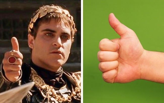 Думка про те, що піднятий вгору палець дарував життя звойована гладіаторові, а опущений закликав убити, отримала поширення в XIX столітті. Такий сюжет зобразив Жан-Леон Жером на картині Pollice verso. Зараз цю версію піддали сумніву, адже насправді зберегти життя переможеному міг жест «стиснутий кулак». У слов'янських народів піднятий вгору палець був хорошим знаком, символом родючості, тяги до сонця. У США і Європі цей жест, що перекочував з реального життя в інтернет, називається лайк.