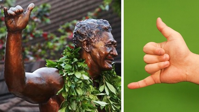 Далеко не всі знають назву цього жесту, що, втім, не заважає йому бути одним з найпоширеніших у світі. За однією з версій, цей жест з'явився в честь гавайського рибака Хаман Калили (Hamana Kalili), який втратив три пальці правої руки. Після аварії він працював охоронцем в поїзді і коли йому потрібно було показати «все ясно», він розмахував долонею. Діти наслідували жесту, і він перетворився на знак Шака. Хамане Калили нещодавно навіть встановили пам'ятник у Полинейзийском культурному центрі.