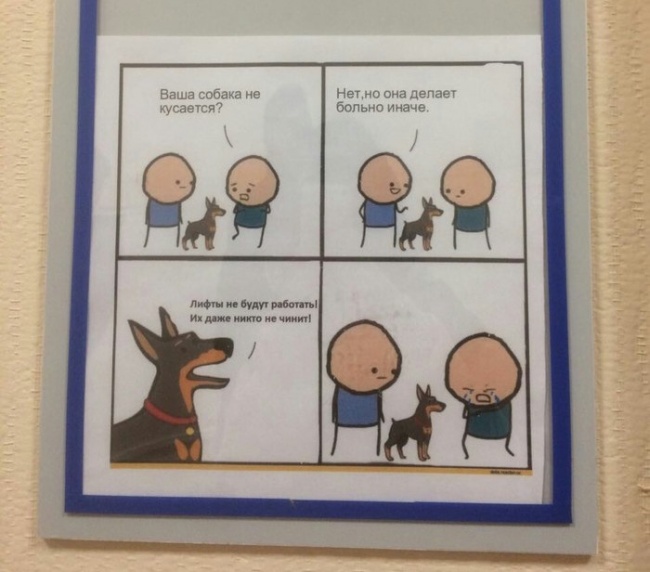 «Ось вже 2 місяці в нашому бізнес-центрі працює тільки 1 ліфт із 3. Якийсь жартівник сьогодні повісив ось це»