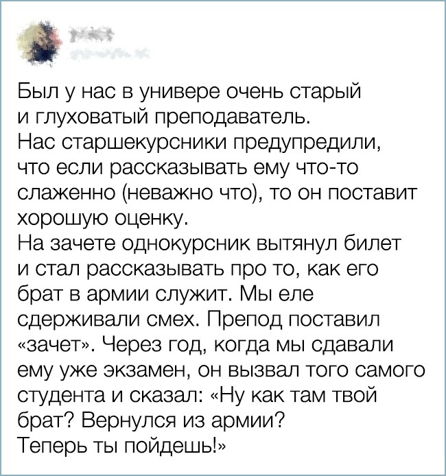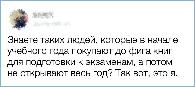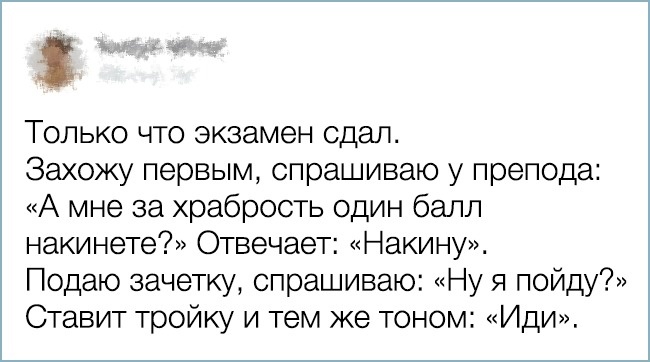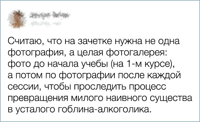 Майже кожен з нас пройшов через студентське життя, з її іспитами, курсовими і нервами. І ми з упевненістю можемо сказати: «До всього треба ставитися простіше». Герої нашої сьогоднішньої добірки не без посмішки це підтвердять, тому що всі ці кумедні казуси, які трапляються під час сесій, в їх пам'яті ще свіжі.